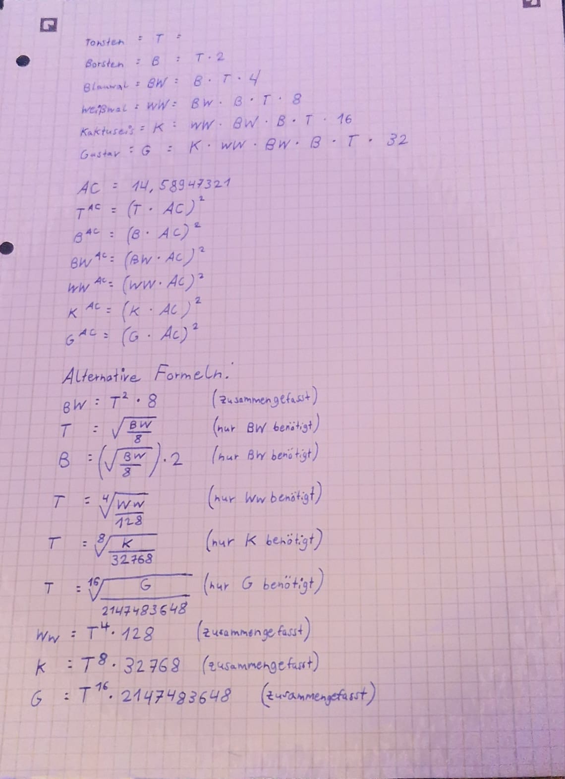 T1 = G1214748364816\sqrt[16]{\frac{G_1}{2147483648}} (Gustav benötigt)